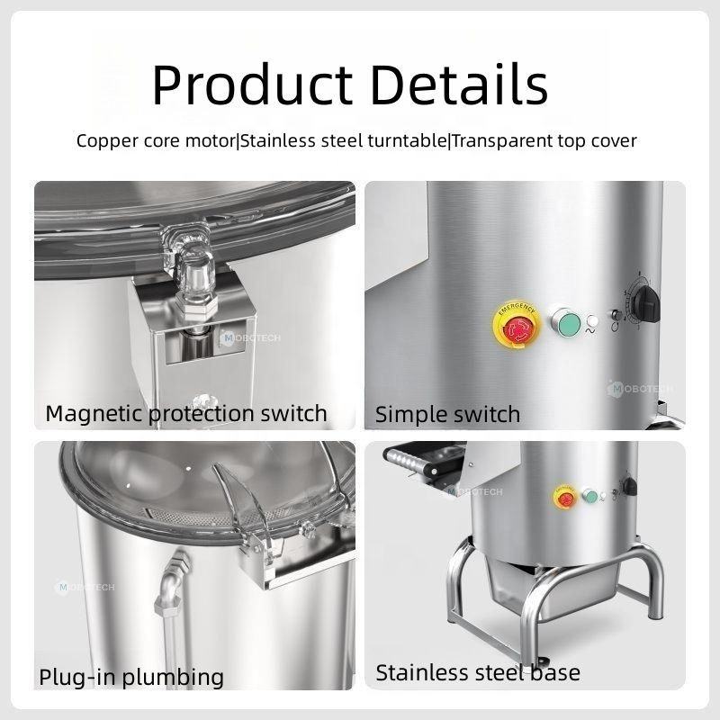 - Peels up to 40 lb. of potatoes per 5 minute cycle.